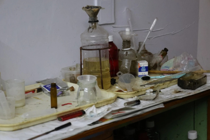 消防员赶到男孩家中,一进卧室,眼前的景象让他们心头一紧,在紧靠床铺的木质橱柜上,男孩搭建了自己的“小小实验室”,这里摆放着多种化学试剂,以及酒精灯等实验仪器,存在着不小的火灾隐患。